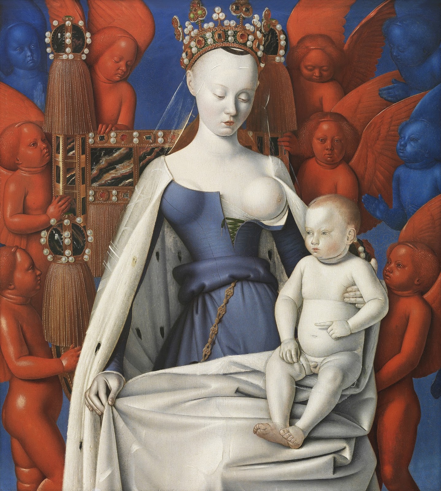9 - Jean Fouquet. Virgin and Child surrounded by Angels (Melun diptych), ca. 1450 (Koninklijk Museum voor Schone Kunsten, Antwerp).